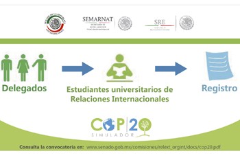 Con el propósito de contribuir a la formación de internacionalistas en temas multilaterales como el cambio climático, las Comisiones de Relaciones Exteriores Organismos Internacionales, Medio Ambiente y Recursos Naturales, y Especial de Cambio Climático del Senado de la República, convocan a estudiantes universitarios a participar en el Simulador COP 20 –modelo ONU.