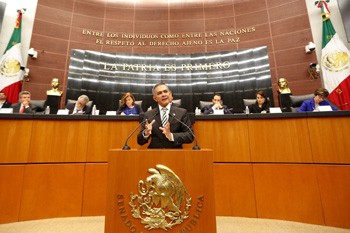 - Es una buena oportunidad para que México dé un paso muy importante en materia de seguridad, sostiene ante senadores de la República.