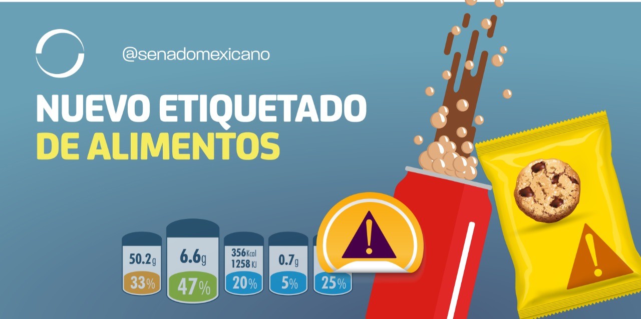 El Senado de la República aprobó las reformas para establecer un etiquetado frontal en alimentos y bebidas no alcohólicas para advertir sobre los productos que excedan los límites máximos de contenido energético, azúcares añadidos, grasas saturadas, sodio y demás nutrimentos críticos.
