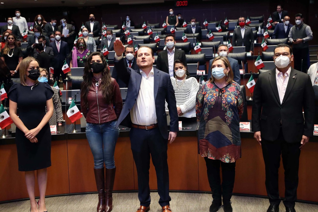 El presidente de la Mesa Directiva, Oscar Eduardo Ramírez Aguilar, tomó la protesta de ley a José Alberto Galarza Villaseñor, como senador de la República, a partir de este día.